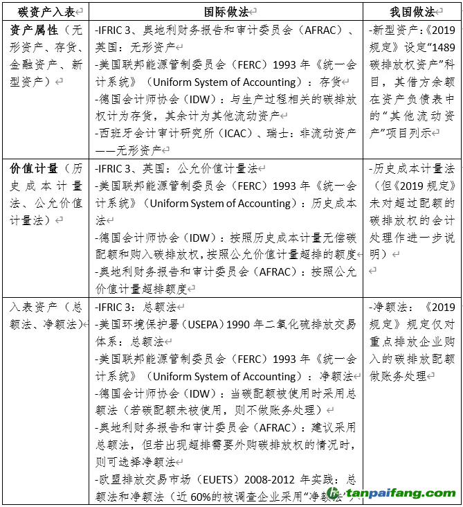 表 1 碳資產(chǎn)入表的國(guó)內(nèi)外做法
