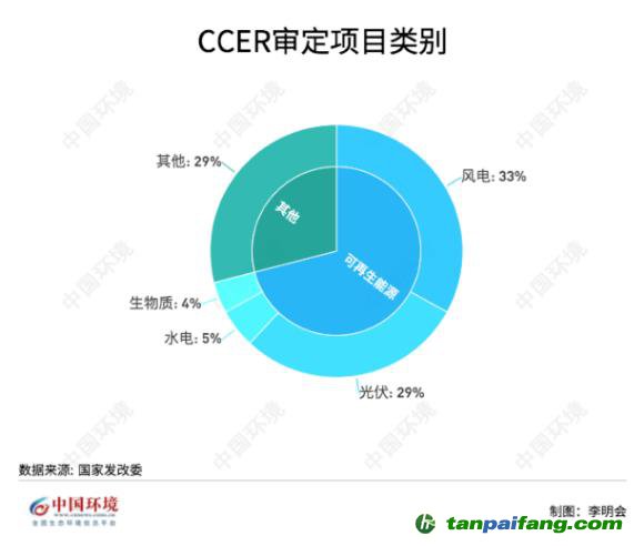 崔伯龍告訴記者說(shuō):“自此未有新的CCER項(xiàng)目簽發(fā),目前市面上所能交易的都是之前已經(jīng)簽發(fā)的存量。根據(jù)國(guó)家發(fā)改委的公示,CCER審定項(xiàng)目已累計(jì)達(dá)到2871個(gè),可再生能源項(xiàng)目比重約71%,其中風(fēng)電、光伏、水電項(xiàng)目居多。”