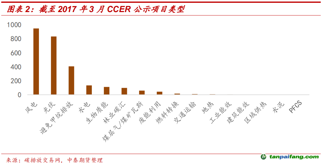CCER的供應(yīng)量從2017年公示的項(xiàng)目類型來(lái)看,可再生能源類總量占比最高。目前,CCER方法學(xué)中減排額外性論證要求確認(rèn)項(xiàng)目的基準(zhǔn)情景難以商業(yè)化或獲得足夠的投資收益,從而借助銷售CCER實(shí)現(xiàn)商業(yè)可行性。這一點(diǎn)與進(jìn)入平價(jià)上網(wǎng)時(shí)代的可再生能源相背離,前期依靠補(bǔ)貼的時(shí)代結(jié)束也意味著其存在自給的收益。因此,風(fēng)電、光伏在內(nèi)的可再生能源項(xiàng)目是否獲簽存在著較大的不確定性。 內(nèi).容.來(lái).自:中`國(guó)`碳#排*放*交*易^網(wǎng) t a np ai f an g.com