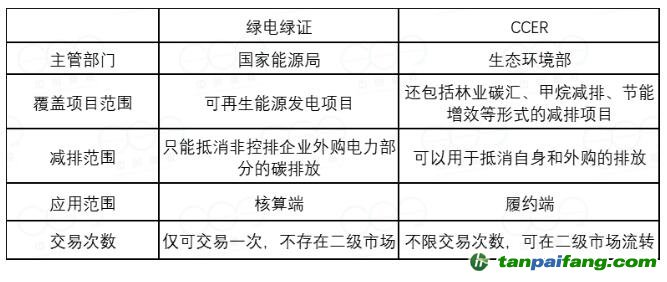 CCER和綠電綠證的具體區(qū)別如下表所示: