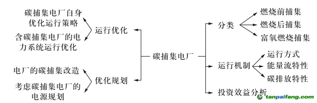 圖1 碳捕集電廠的相關(guān)研究現(xiàn)狀框架