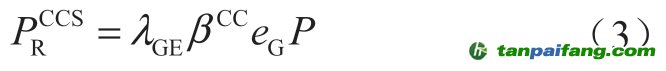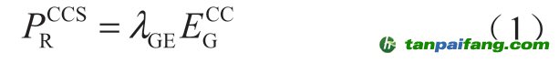 第2類能量損耗是碳捕集系統(tǒng)在吸收、分解、壓縮CO2的過程中產(chǎn)生的能量損失,與碳捕集系統(tǒng)的運行水平有關(guān),稱為運行能耗PRCCS。碳捕集量越大,對應(yīng)的運行能耗也越大。大量文獻(xiàn)的實測結(jié)果表明[22-23],捕集單位CO2所消耗的功率大致為常數(shù),記為λGE。因而,可得到運行能耗的表達(dá)式為 禸*嫆唻@洎:狆國湠棑倣茭昜蛧 τāńpāīfāńɡ.cōm