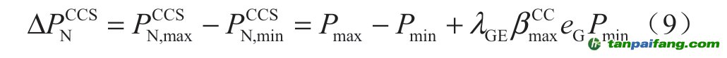 碳捕集電廠的等效輸出功率扣除基準(zhǔn)能耗和運行能耗之后,就是碳捕集電廠對外輸出的有功功率,稱為凈輸出功率PNCCS: 本/文-內(nèi)/容/來/自:中-國-碳-排-放-網(wǎng)-tan pai fang . com