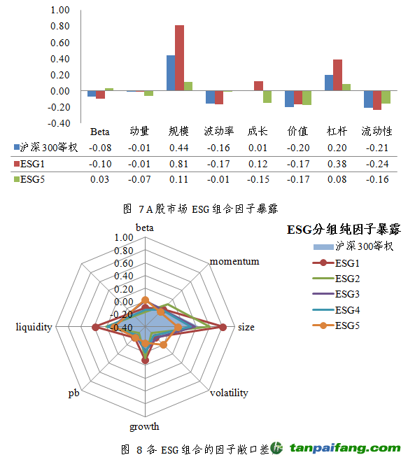 為全面分析ESG組合的風(fēng)險(xiǎn)收益特征,對(duì)A股市場(chǎng)ESG組合風(fēng)險(xiǎn)暴露進(jìn)行分解,對(duì)組合績(jī)效進(jìn)行歸因分析。根據(jù)中證ESG評(píng)價(jià)分?jǐn)?shù)將滬深300樣本股由高到低分為5個(gè)組合,依次為ESG1到ESG5。 內(nèi)/容/來(lái)/自:中-國(guó)-碳-排-放*交…易-網(wǎng)-tan pai fang . com
