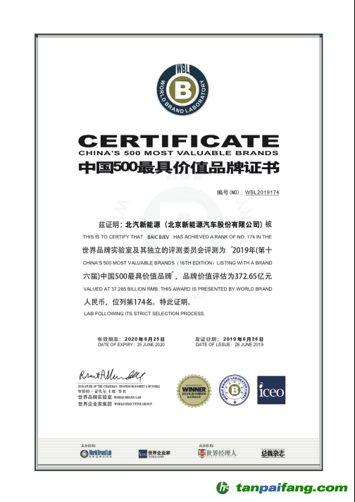 經(jīng)營績效上,北汽藍(lán)谷2019年實現(xiàn)營業(yè)收入235.89億元,利潤總額9201.01萬元,納稅額7.41億元;當(dāng)期銷售整車15.06萬輛,連續(xù)七年居中國純電動汽車銷量第一。2019年,北汽藍(lán)谷以372.65億元的品牌價值入圍“中國500最具價值品牌”,排名第174位,品牌價值同比增長23%,成為唯一連續(xù)兩年入榜的