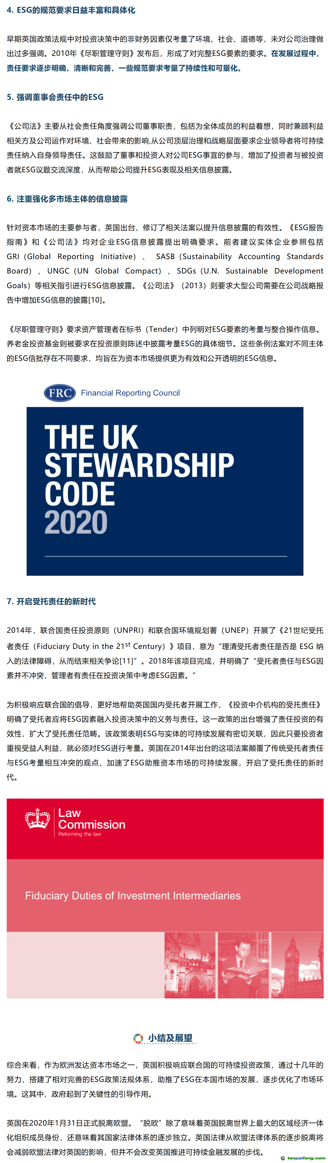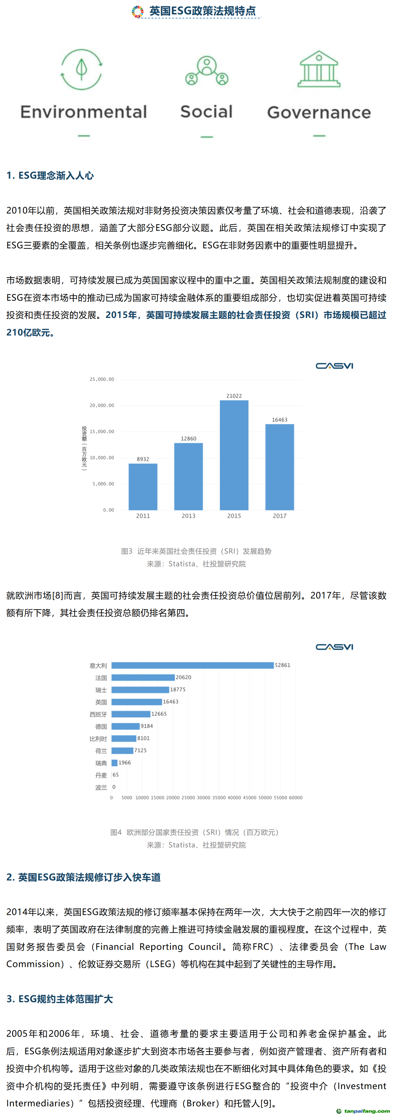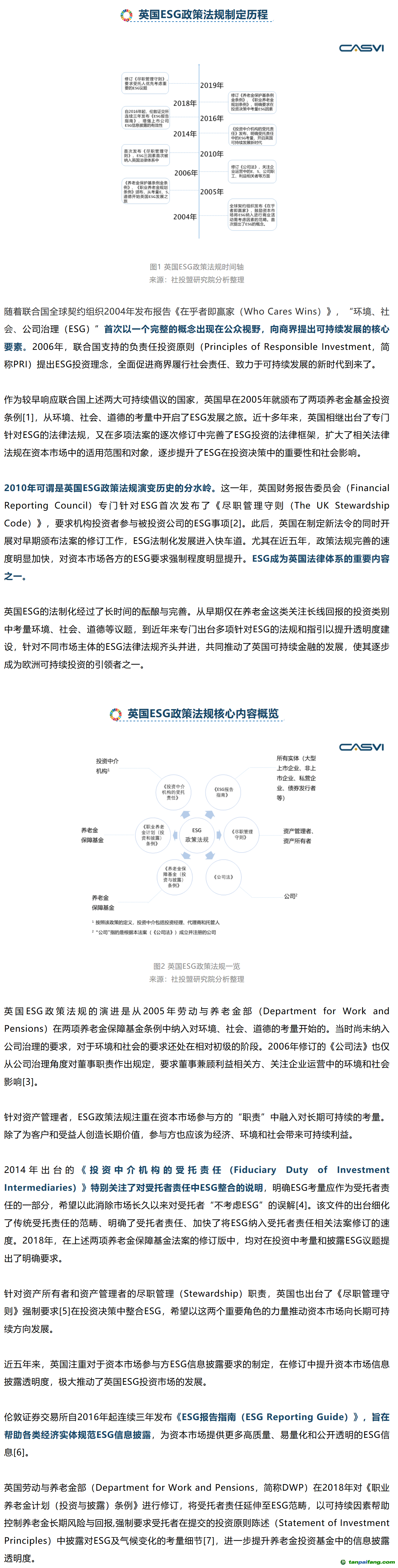 隨著國內外投資與監(jiān)管機構對ESG理念的重視,針對ESG的討論熱度不減。作為歐洲發(fā)達ESG投資市場之一,英國積極響應聯合國的可持續(xù)發(fā)展投資倡議,通過十幾年的努力,搭建了相對完善的ESG政策法規(guī)體系。 禸嫆@唻洎:狆國湠棑倣茭昜蛧 τāńpāīfāńɡ.cōm