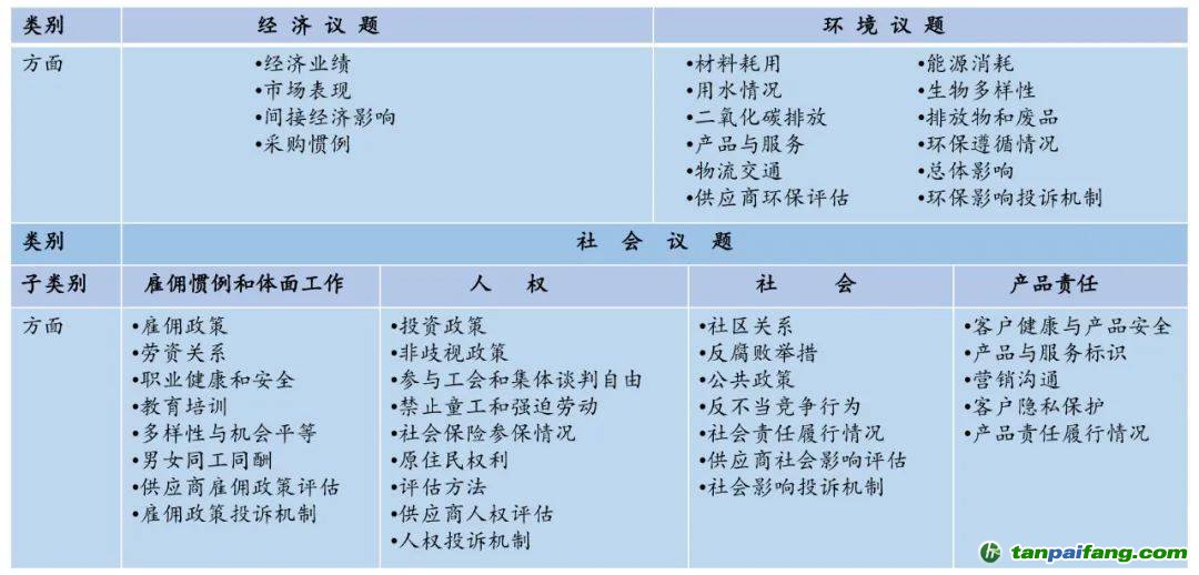 圖2 GRI具體議題準(zhǔn)則規(guī)范要點(diǎn) 本文`內(nèi)-容-來(lái)-自;中_國(guó)_碳_交^易=網(wǎng) tan pa i fa ng . c om