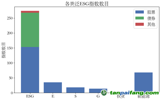 圖1 各類ESG指數數目 本+文`內/容/來/自:中-國-碳-排-放-網-tan pai fang . com