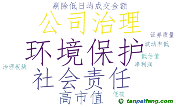 本文通過Wind收集到所研究50只指數的構建方法,并將它們概括為多個主題,再按照主題在該類別出現(xiàn)次數畫出下面的三份詞云。