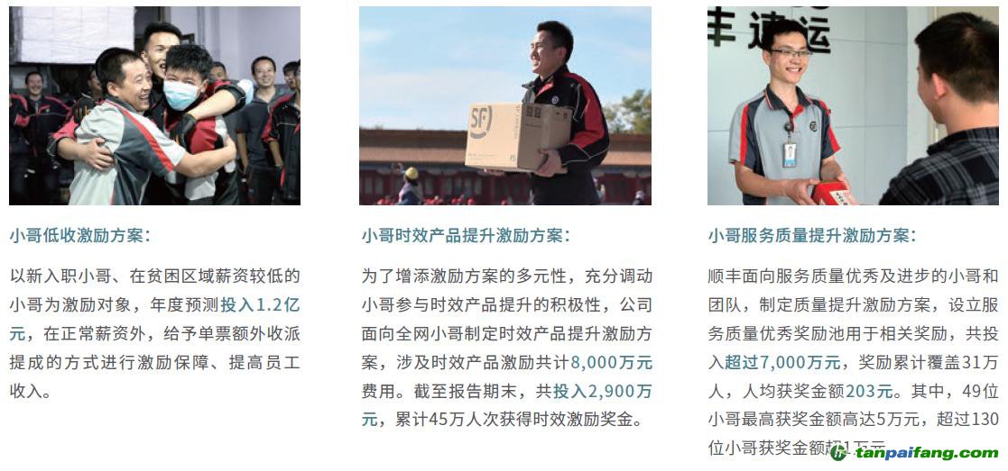 順豐積極落實國家七部委發(fā)布《關(guān)于做好快遞員群體合法權(quán)益保障工作意見》的號召,新增投入2億元以上專項資金,對服務質(zhì)量優(yōu)秀、業(yè)務達成突出的員工,給予現(xiàn)金及其他形式的獎勵,以提升員工的收入水平。 本`文@內(nèi)-容-來-自;中^國_碳0排0放^交-易=網(wǎng) ta n pa i fa ng . co m