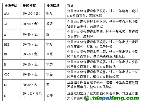附表:聯(lián)洲信評(píng)ESG評(píng)級(jí)結(jié)果釋義 本+文+內(nèi)/容/來(lái)/自:中-國(guó)-碳-排-放(交—易^網(wǎng)-tan pai fang . com