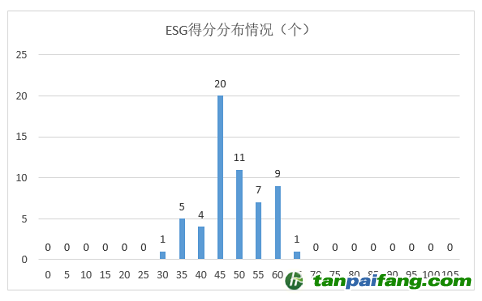圖3:ESG得分分布情況(家) 本文`內(nèi)-容-來(lái)-自;中_國(guó)_碳_交^易=網(wǎng) tan pa i fa ng . c om