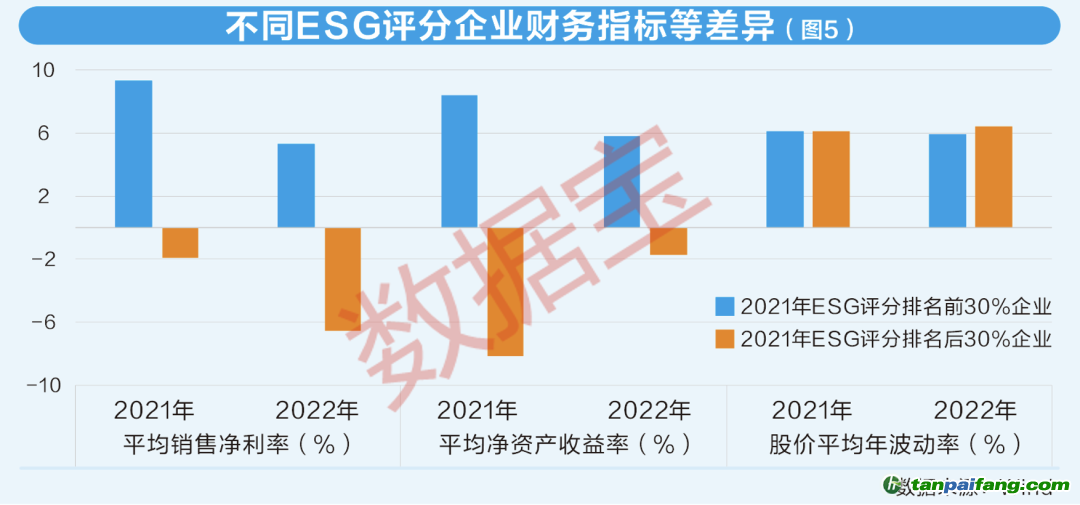 數(shù)據(jù)顯示,2021年Wind ESG平均分排名前30%的企業(yè)當(dāng)年及下一年的爭(zhēng)議事件平均分為2.88分和2.86分,比排名后30%的企業(yè)在相應(yīng)年份的平均分均要高。此外,2021年Wind ESG平均分前30%的企業(yè)當(dāng)年及下一年的股價(jià)平均年波動(dòng)率為6.12%和5.96%,均低于ESG評(píng)分后30%的企業(yè)的股價(jià)平均年波動(dòng)率。 內(nèi)/容/來(lái)/自:中-國(guó)-碳-排-放*交…易-網(wǎng)-tan pai fang . com