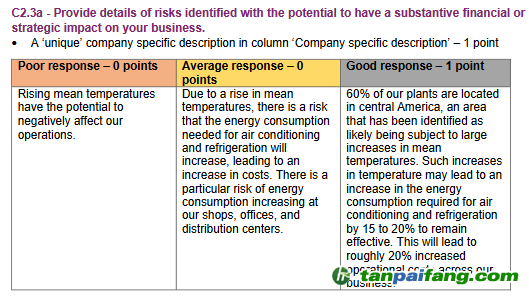 根據(jù)CDP評分方法,針對公司特殊性具體的回復(fù)比一般性陳述回復(fù)可獲得更高的分?jǐn)?shù)(如下圖)。 禸嫆@唻洎:狆國湠棑倣茭昜蛧 τāńpāīfāńɡ.cōm
