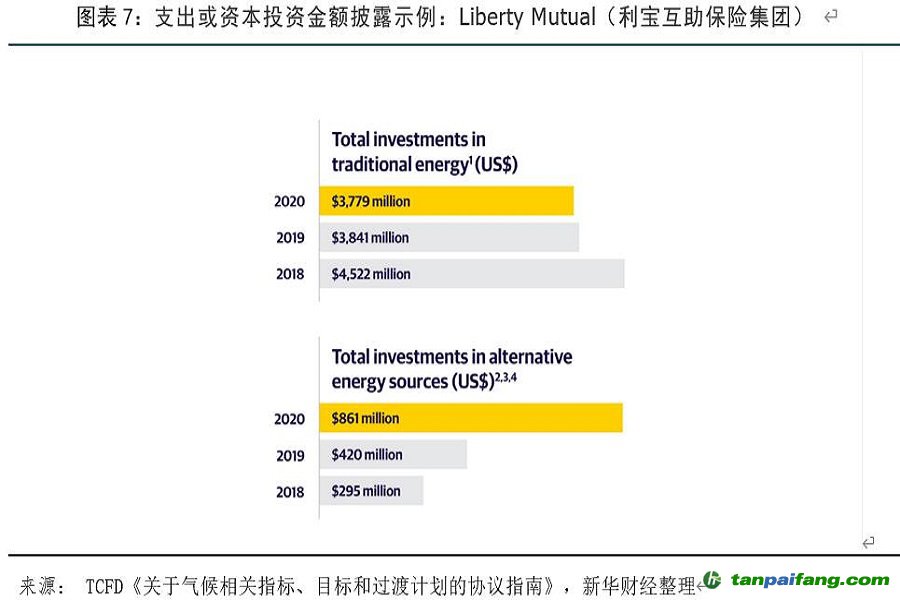這些支出或投資具體表現(xiàn)為用于低碳解決方案的資本支出比例、低碳技術(shù)研發(fā)的投資金額、可再生能源投資金額等。例如,高盛披露,其在2012制定了一個目標,即部署400億美元的資金來推動清潔能源行業(yè)的發(fā)展,后來將其擴大到2025年的1500億美元,現(xiàn)已包含在其更廣泛的7500億美元承諾中。 本+文+內(nèi).容.來.自:中`國`碳`排*放*交*易^網(wǎng) t a np ai fan g.com