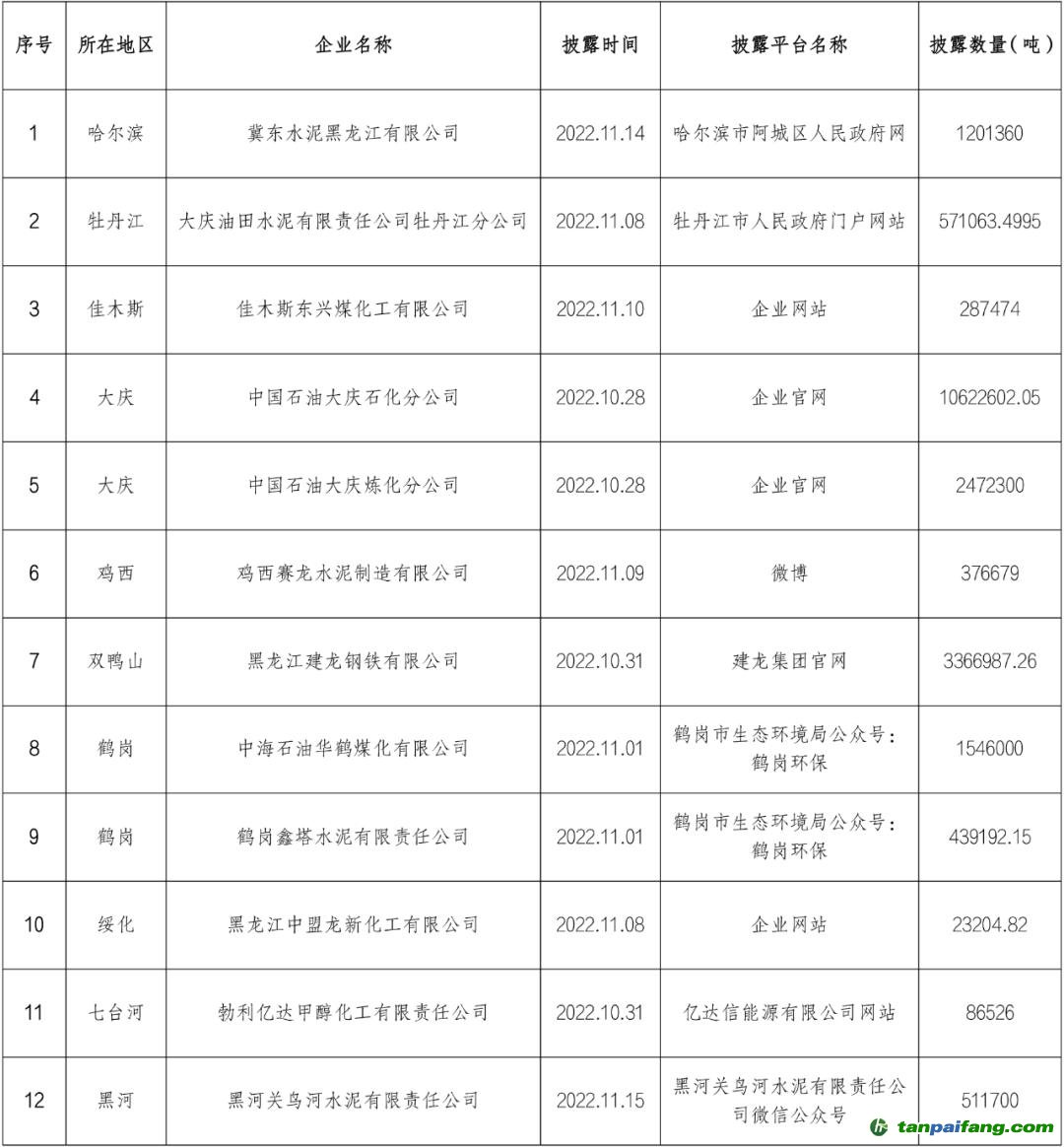 黑龍江省企業(yè)溫室氣體排放信息披露情況匯總表