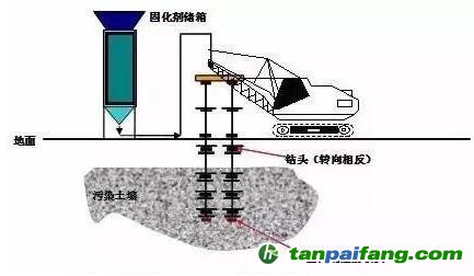 原理:通過一定的機械力在原位向污染介質(zhì)中添加固化劑/穩(wěn)定化劑,在充分混合的基礎(chǔ)上,
