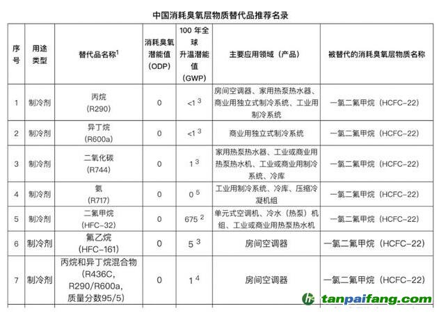 為了替代這種GWP值高達(dá)1810的制冷劑,《名錄》中推薦了七種消耗臭氧潛能值(ODP)為零且GWP值較小的綠色制冷劑,如丙烷、異丁烷、氨、二氧化碳等,涉及房間空調(diào)器、家用熱泵熱水器、工商制冷系統(tǒng)、冷庫(kù)、壓縮冷凝機(jī)組等應(yīng)用領(lǐng)域。這其中,特別是丙烷作為家用空調(diào)和熱泵熱水器的首選替代制冷劑,二氧化碳作為家用熱泵熱水器行業(yè)的推薦替代制冷劑備受矚目,為相關(guān)行業(yè)、企業(yè)研發(fā)和使用替代品提供了有益指導(dǎo)。