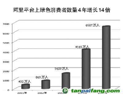 通過對阿里中國零售平臺上的消費者購物行為、商品特征等進行分析發(fā)現(xiàn),符合綠色消費者特征的在線人群達到6500萬人,占淘寶活躍用戶的16%,近4年增長了14倍。