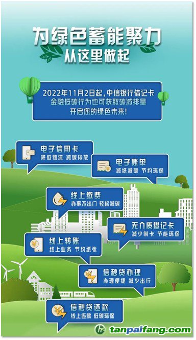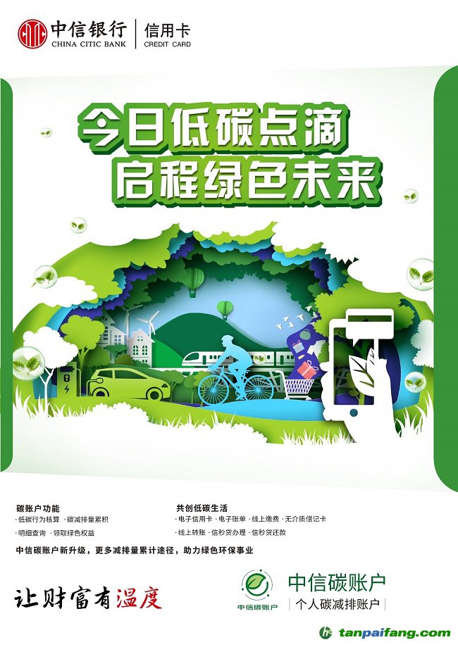 同期,圍繞綠色低碳理念,中信銀行正式發(fā)行“低碳財富卡”,該卡板采用PETG環(huán)保材質(zhì),用戶開卡后即同步激活“中信碳賬戶”,低碳行為累計個人碳減排量,每月歷歷在目。與此同時,持卡用戶可獲享中信銀行APP跨行匯款、信用卡還款費用減免,綠色商戶消費優(yōu)惠等權(quán)益,并可參與新客見面禮、財富進階禮的豐厚禮品回饋活動。本次中信銀行低碳財富卡的發(fā)布,是該行繼今年上半年圍繞廣大車主對于新能源汽車的巨大需求,正式推出首款新能源車主信用卡——中信銀行i車信用卡之后,再次發(fā)行的一款綠色低碳主題銀行卡產(chǎn)品,由此形成了“1個碳賬戶 + 2款低碳主題卡”的產(chǎn)品經(jīng)營體系,拓展該行“綠·信·匯”低碳生態(tài)平臺建設(shè),發(fā)揮產(chǎn)業(yè)鏈和生態(tài)圈的協(xié)同效應(yīng),推動社會生活向綠色低碳轉(zhuǎn)型,助力我國“雙碳”目標(biāo)的實現(xiàn)。 本文+內(nèi)-容-來-自;中^國_碳+排.放_交^易=網(wǎng) t a n pa ifa ng .c om