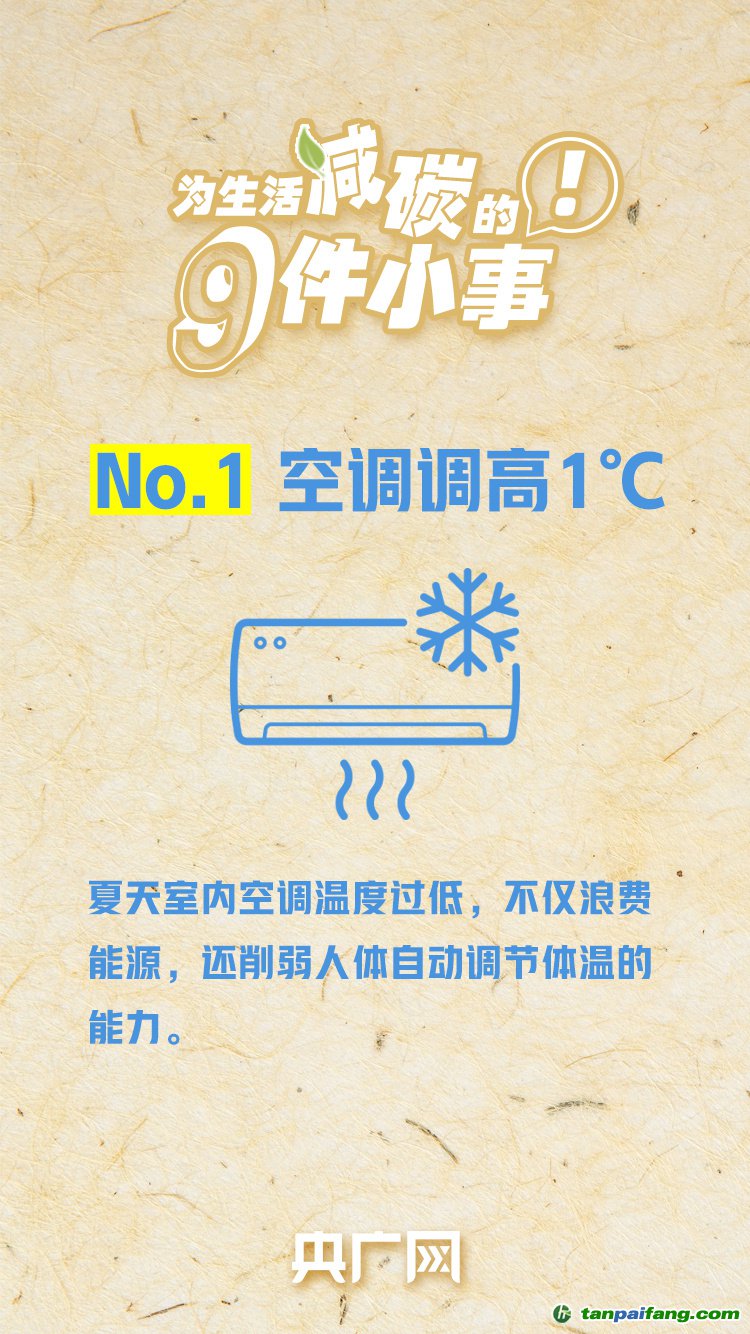 今天(7月12日)是2023年“全國低碳日”,主題是“積極應(yīng)對氣候變化,推動綠色低碳發(fā)展”。在夏天,空調(diào)你會開幾度?上班和下班,騎行還是開車?……低碳生活,其實一直發(fā)生在我們生活的點滴之間??祀S央廣網(wǎng)一起,get為生活減碳的9件小事! 本/文-內(nèi)/容/來/自:中-國-碳-排-放-網(wǎng)-tan pai fang . com