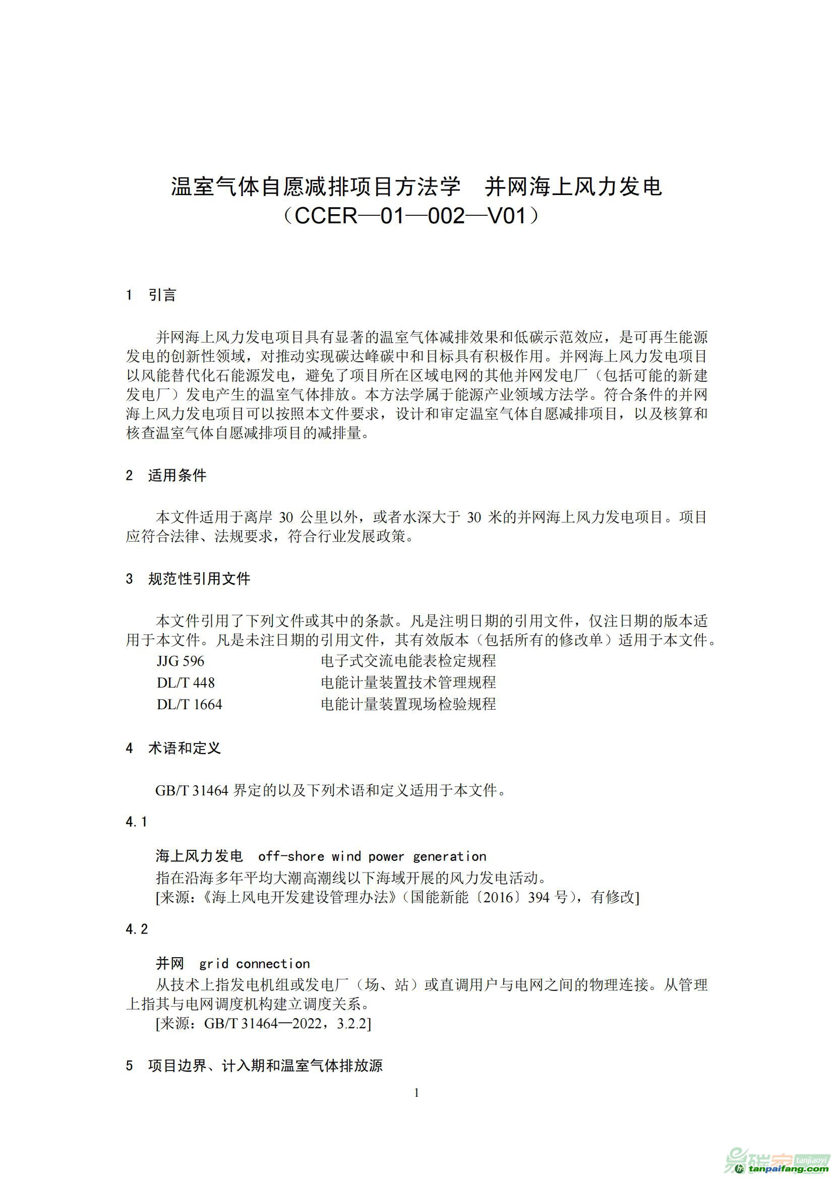 CCER《溫室氣體自愿減排項(xiàng)目方法學(xué) 并網(wǎng)海上風(fēng)力發(fā)電(CCER-01-002-V01)》電子版全文