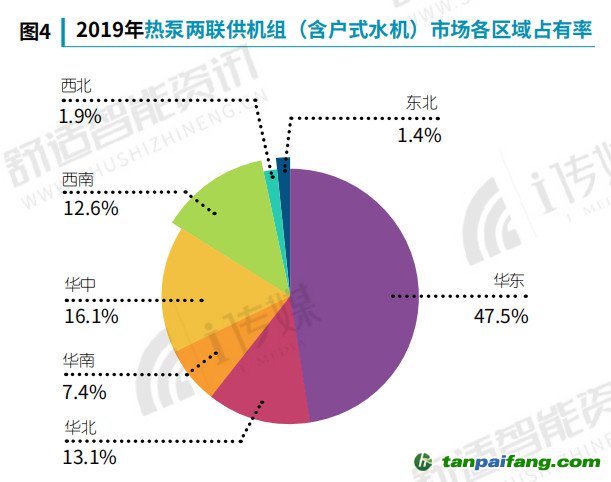 當(dāng)然,不能忽視的還有“上氟下水”這一形式的強(qiáng)勢崛起, 憑借在多聯(lián)機(jī)市場多年積累下的豐富渠道資源,地暖多聯(lián)機(jī)自推向市場以來,就呈現(xiàn)出了昂揚(yáng)的搶占市場的態(tài)勢,特別是各多聯(lián)機(jī)企業(yè)加強(qiáng)著對于這一系統(tǒng)形式的重視,2019 年這一形式的熱泵兩聯(lián)供機(jī)組在市場的表現(xiàn)同樣不俗。當(dāng)然,更為進(jìn)階地“輻射式”系統(tǒng)也開始打開受眾群,特別是相關(guān)服務(wù)商在這一系統(tǒng) 形式上的成熟和成長,高端的用戶群對于更為極致的舒適性追求正讓這一形式的熱泵兩聯(lián)供挖掘到了增長點(diǎn)。