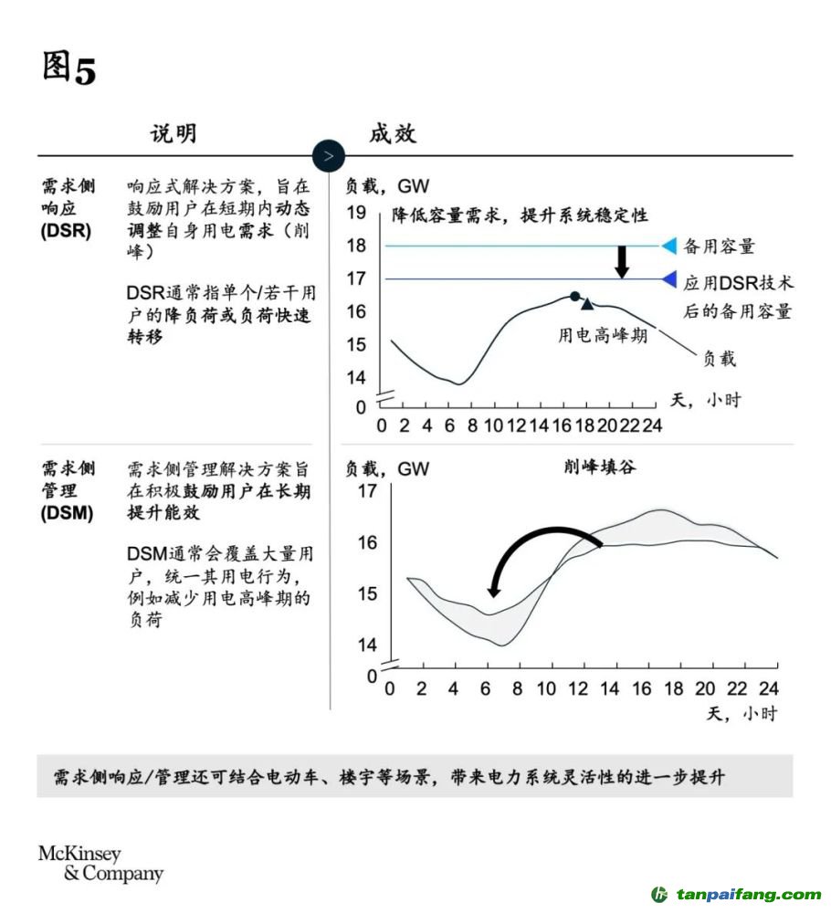 加強(qiáng)需求側(cè)管理與響應(yīng):除提升供給側(cè)的靈活性之外,需求側(cè)的改革也是降低儲(chǔ)能系統(tǒng)成本、提升電力系統(tǒng)穩(wěn)定性的有效手段。當(dāng)前的需求側(cè)改善手段主要包括需求側(cè)響應(yīng)(部分用戶自主進(jìn)行負(fù)荷調(diào)節(jié))及需求側(cè)管理(覆蓋大量用戶的統(tǒng)一用電行為調(diào)整),兩者均可降低社會(huì)高峰用電需求(見圖5)。這兩類技術(shù)廣泛應(yīng)用于北美以及歐盟多數(shù)國家在中國,以上海等區(qū)域?yàn)?a href='http://www.avav2727.com/zhuanti/tanjiaoyishidian.html' target='_blank'>試點(diǎn)的小型需求側(cè)響應(yīng)項(xiàng)目尚處于測(cè)試階段。基于海外發(fā)達(dá)國家應(yīng)用需求側(cè)響應(yīng)技術(shù)的歷史經(jīng)驗(yàn),需求側(cè)響應(yīng)通??捎行Ы档?%~6%的容量儲(chǔ)備需求。 本文+內(nèi)-容-來-自;中^國_碳+排.放_(tái)交^易=網(wǎng) t a n pa ifa ng .c om
