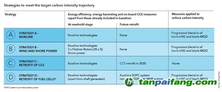 策略 D:2035 年安裝模塊化燃料電池系統(tǒng)和余熱回收系統(tǒng)。到 2037 年,bio/e-LNG 和 bio/e-MGO 逐步加入,以實(shí)現(xiàn)目標(biāo)碳強(qiáng)度。 本+文`內(nèi).容.來.自:中`國`碳`排*放*交*易^網(wǎng) t a np ai fan g.com
