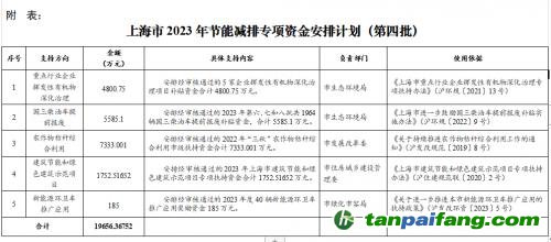 上海市下達(dá)2023年第四批節(jié)能減排專項(xiàng)資金