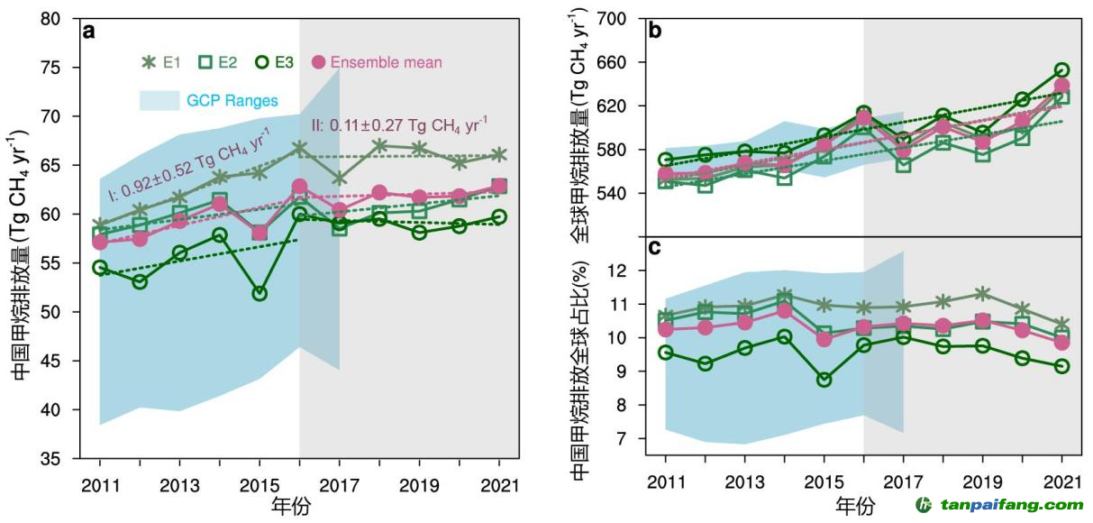 精確量化甲烷排放及其各部門的貢獻(xiàn)對(duì)于追蹤排放變化和評(píng)估減排效果至關(guān)重要?!都淄榕欧趴刂菩袆?dòng)方案》全面提出加強(qiáng)甲烷監(jiān)測(cè)核算報(bào)告和核查體系建設(shè)的要求。我國甲烷排放核算起步晚,基礎(chǔ)薄弱,排放控制和監(jiān)測(cè)能力亟待加強(qiáng)。過去國際社會(huì)普遍認(rèn)為中國甲烷排放對(duì)全球甲烷濃度增長(zhǎng)有著顯著影響,而中國科學(xué)院青藏高原研究所的最新研究表明,中國甲烷排放自2016年后增速明顯放緩,對(duì)全球甲烷排放的貢獻(xiàn)正在下降。該研究成果以“Slow Down in China's Methane Emission Growth”為題發(fā)表于《國家科學(xué)評(píng)論》期刊(National Science Review)。 本`文-內(nèi).容.來.自:中`國^碳`排*放*交^易^網(wǎng) ta np ai fan g.com