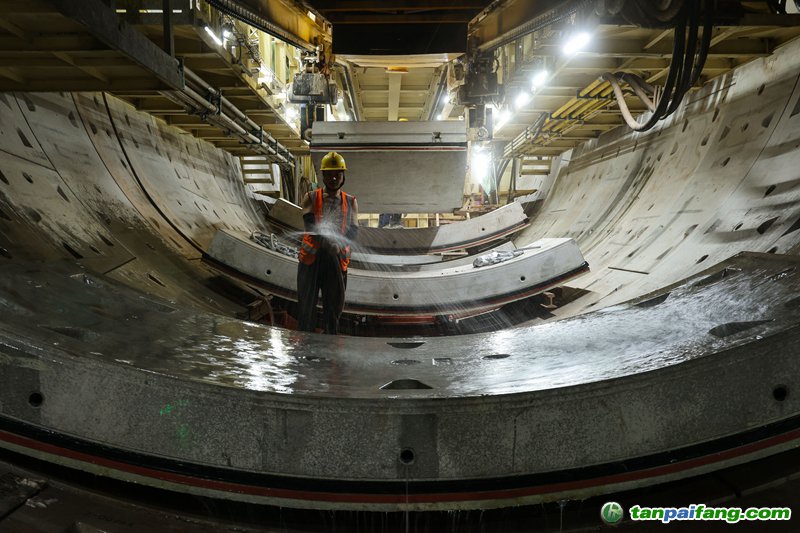 7月18日,施工人員在管片拼裝前使用凈化處理水沖洗隧道管片,由此產(chǎn)生的施工污水仍將被凈化后再利用。