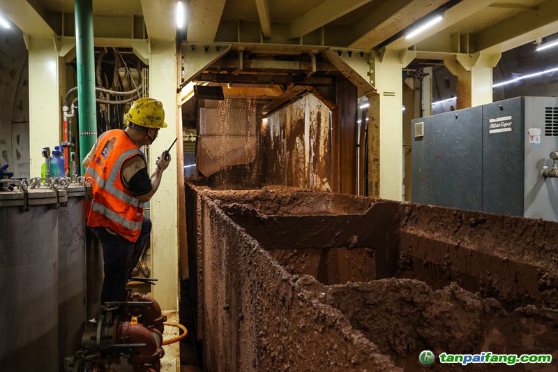 7月18日,施工人員在盾構(gòu)機(jī)尾指揮泥水渣土運(yùn)輸車接收盾構(gòu)機(jī)輸出的盾構(gòu)棄渣。 本/文-內(nèi)/容/來/自:中-國-碳-排-放-網(wǎng)-tan pai fang . com