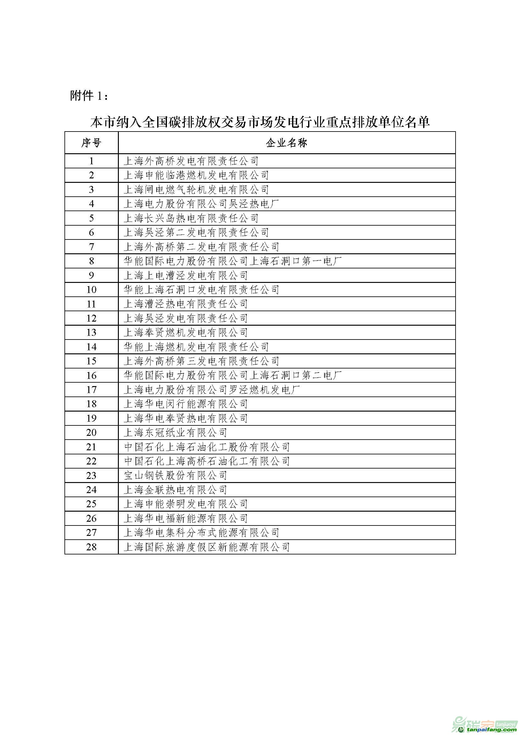 上海市納入全國(guó)碳排放權(quán)交易市場(chǎng)發(fā)電行業(yè)重點(diǎn)排放單位名單