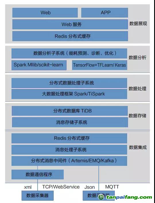 平臺架構(gòu)設(shè)計,通過應(yīng)用分布式消息中間件、分布式NewSQL數(shù)據(jù)庫、分布式計算框架等大數(shù)據(jù)技術(shù),以及深度神經(jīng)網(wǎng)絡(luò)與機器學(xué)習(xí)框架等人工智能技術(shù),滿足海量數(shù)據(jù)集成、存儲、處理和分析需求。這些成果可以為建筑高效運行管理提供技術(shù)支撐。