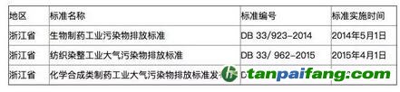 2.2014年,浙江省發(fā)布了《生物制藥工業(yè)污染物排放標(biāo)準(zhǔn)》,2016年10月1日起,浙江省再次針對(duì)制藥行業(yè)開(kāi)始執(zhí)行另一項(xiàng)地方標(biāo)準(zhǔn)《化學(xué)合成類制藥工業(yè)大氣污染物排放標(biāo)準(zhǔn)》,不確定下一步浙江省是否會(huì)像北京、廣東、上海那樣制定更多的行業(yè)標(biāo)準(zhǔn)。 內(nèi).容.來(lái).自:中`國(guó)*碳-排*放*交*易^網(wǎng) t a npai fa ng.com