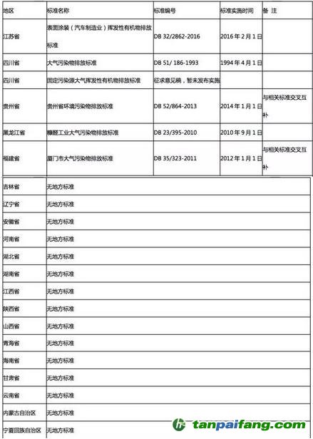 截止2016年12月31日全國(guó)各地陸續(xù)公布VOCs最新排放標(biāo)準(zhǔn)的正式發(fā)布稿和征求意見(jiàn)稿。征求意見(jiàn)稿雖然還未正式發(fā)布,但是對(duì)17年的工作有很大的指導(dǎo)意義。 禸嫆@唻洎:狆國(guó)湠棑倣茭昜蛧 τāńpāīfāńɡ.cōm