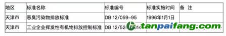 1.天津市地方標(biāo)準(zhǔn),主要有2個(gè),一個(gè)是制定于1996年的《惡臭污染物排放標(biāo)準(zhǔn)》,另一個(gè)是制定于2014年的《工業(yè)企業(yè)揮發(fā)性有機(jī)物排放標(biāo)準(zhǔn)》,制定時(shí)間都早于北京。