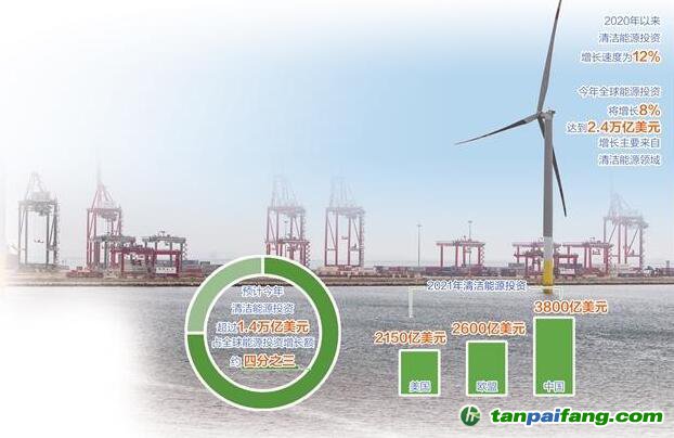 從清潔能源總體投資分布看,預(yù)計(jì)今年投資將超過(guò)1.4萬(wàn)億美元,占全球能源投資增長(zhǎng)額的約四分之三。統(tǒng)計(jì)數(shù)據(jù)顯示,2021年,中國(guó)的清潔能源投資達(dá)到3800億美元,高居榜首;隨后是歐盟,為2600億美元,美國(guó)為2150億美元。許多國(guó)家和地區(qū)都把發(fā)展清潔能源納入刺激經(jīng)濟(jì)復(fù)蘇政策的重要組成部分。