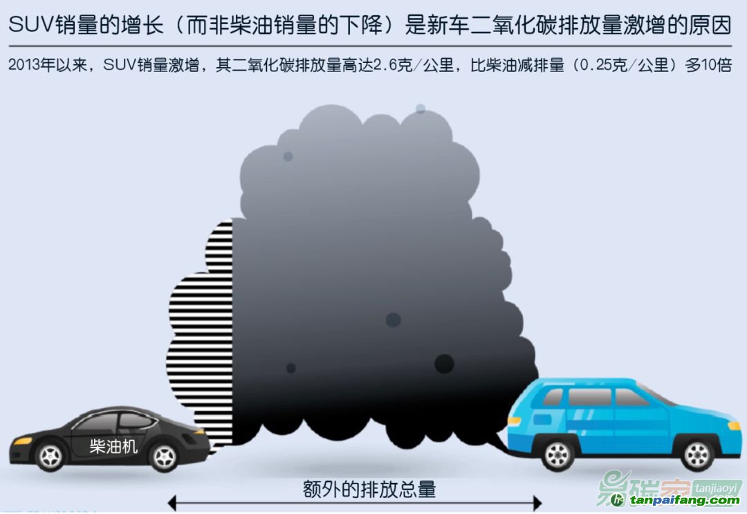 (1)大排量SUV銷量的大幅增長,不僅抵消了柴油機銷量下降所帶來的有限碳排放減少,而且大幅增加了實際的碳排放;