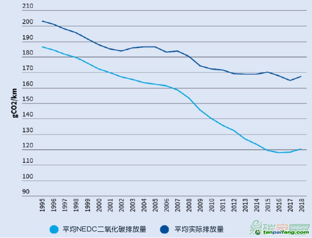 (平均NEDC二氧化碳排放量)和ICCT(與實際排放量的差距)