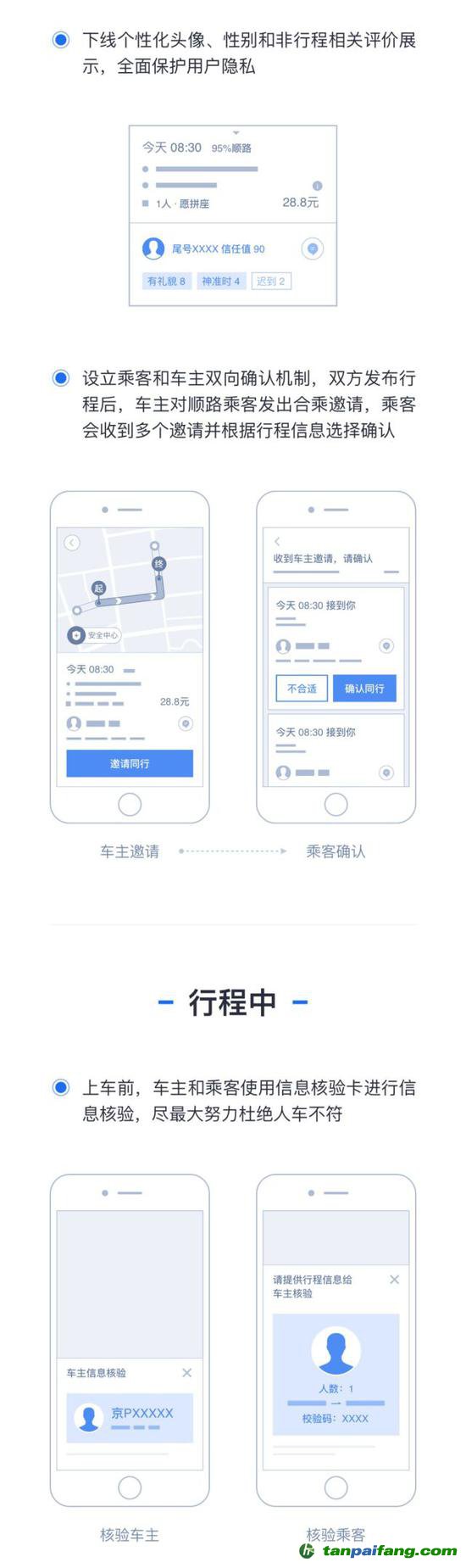 滴滴方面介紹,順風車團隊深刻反思,持續(xù)征求各方意見,對整改方案進行細化和打磨,聚焦“全程安心保障”、“保證真正順路行程”、“保證真實身份核驗”三個方向,累計迭代12個產品版本,優(yōu)化了226項功能。 本+文+內.容.來.自:中`國`碳`排*放*交*易^網 t a np ai fan g.com