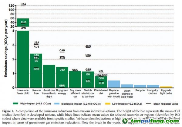 綠色能源、騎自行車出行、避免跨大洋的旅行。特別是如果少生一個孩子,減排效果更大。