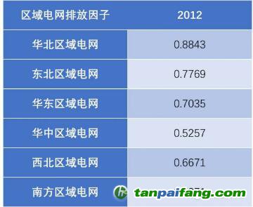 法人邊界中電網(wǎng)年平均供電排放因子按照《2012年中國區(qū)域電網(wǎng)平均二氧化碳排放因子》進行取值,如圖5所示。
