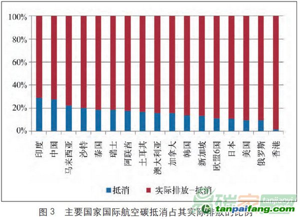 如圖3所示,印度、中國(guó)這類(lèi)發(fā)展中國(guó)家碳抵消量在其實(shí)際碳排放中占到20%以上,而歐盟6國(guó)、日本以及美國(guó)的碳抵消占其實(shí)際排放的比例不足10%。按照這種方案發(fā)展中國(guó)家仍要承擔(dān)更大的責(zé)任,因此這種方案仍然是不公平的。