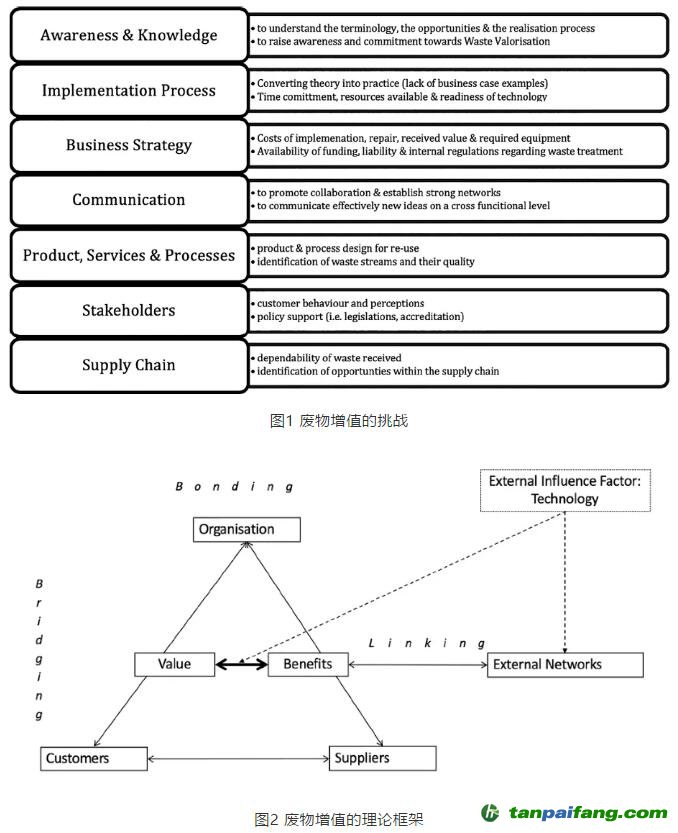 綠色環(huán)保、減少浪費。然而,為了實現(xiàn)循環(huán),需要克服障礙并且開發(fā)新的商業(yè)模型。其中一種商業(yè)模型就是廢物增值。其重點是將廢棄物、副產(chǎn)品或殘余物轉(zhuǎn)化為有價值的材料。本文旨在提出有關(guān)廢物增值模型的最新觀點,基于社會資本理論的視角探索這種循環(huán)商業(yè)模型中的影響因素。研究結(jié)果是基于學(xué)者、企業(yè)家和決策者的焦點小組討論得出的。結(jié)果表明:協(xié)作有助于該種特定商業(yè)模型創(chuàng)造價值,且技術(shù)可作為利益相關(guān)者間協(xié)作的促進者,以實現(xiàn)廢物增值模型的效益?;谶@些研究發(fā)現(xiàn),本研究建立了一個理論框架,該框架可作為進一步開展廢物增值研究的指南。