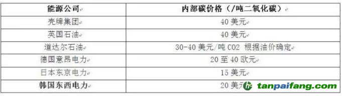 表一:部分外部能源公司的內(nèi)部碳價(jià)格水平