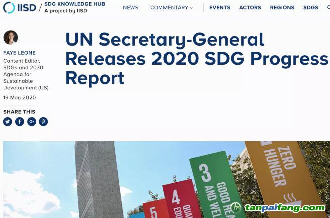 2020年5月19日,國際可持續(xù)發(fā)展研究院(IISD)發(fā)布題為《聯(lián)合國秘書長發(fā)布<2020年可持續(xù)發(fā)展目標(biāo)進(jìn)展報告>》(UN Secretary-General Releases 2020 SDG Progress Report)的報道,提出聯(lián)合國秘書長關(guān)于17個可持續(xù)發(fā)展目標(biāo)(SDG)的年度報告,并在2020年高級別政治