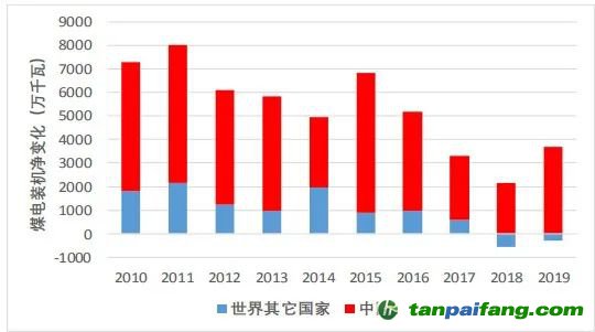 圖1 2010~2019年我國(guó)與全球其他國(guó)家凈新增煤電裝機(jī)情況 本`文@內(nèi)/容/來(lái)/自:中-國(guó)^碳-排-放^*交*易^網(wǎng)-tan pai fang. com