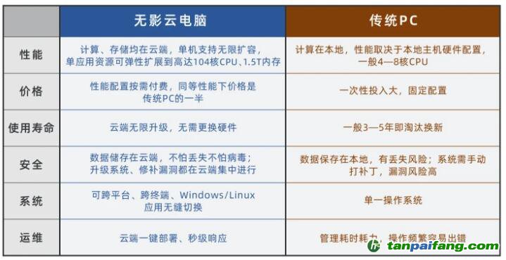 價(jià)格是傳統(tǒng)PC的一半,同時(shí)支持無限升級(jí),不需要3-5年就要淘汰更換一次。無影所有數(shù)據(jù)存儲(chǔ)在云端,不怕電腦丟失更不怕病毒,與阿里云數(shù)據(jù)中心享有同級(jí)別的安全防護(hù)能力。
